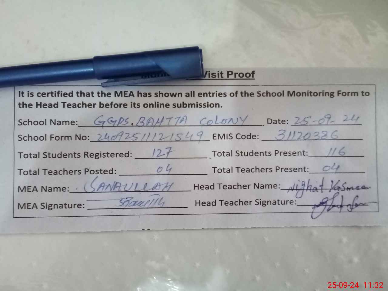 | EMIS Code: 31120386 | Name of School: GGPS BAHTTA COLONY | |||
