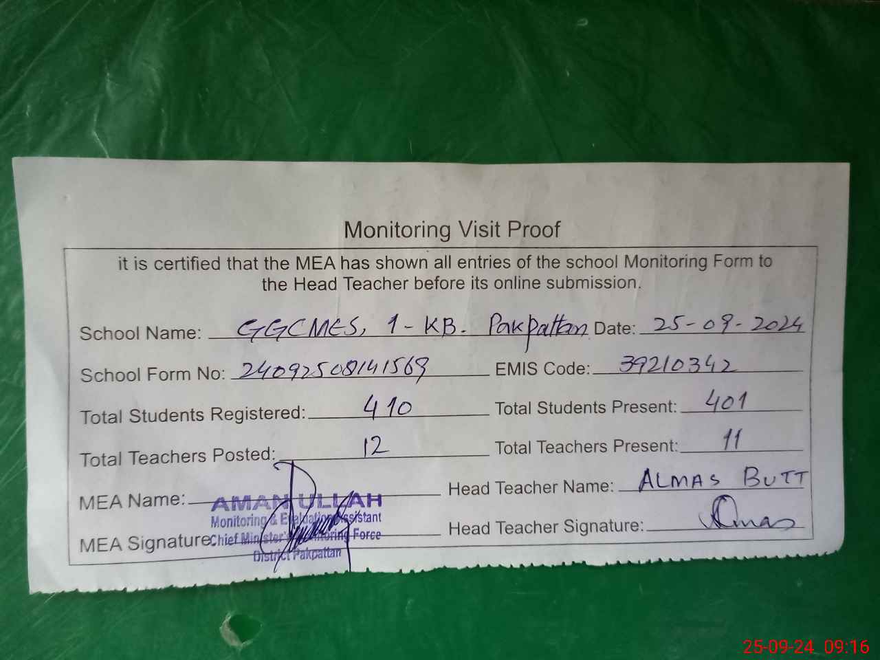 | EMIS Code: 39210342 | Name of School: GGCMES 1 KB PAKPATTAN | |||