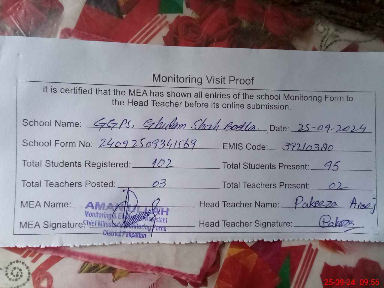 | EMIS Code: 39210380 | Name of School: GGPS GHULAM SHAH BOUDLA | |||