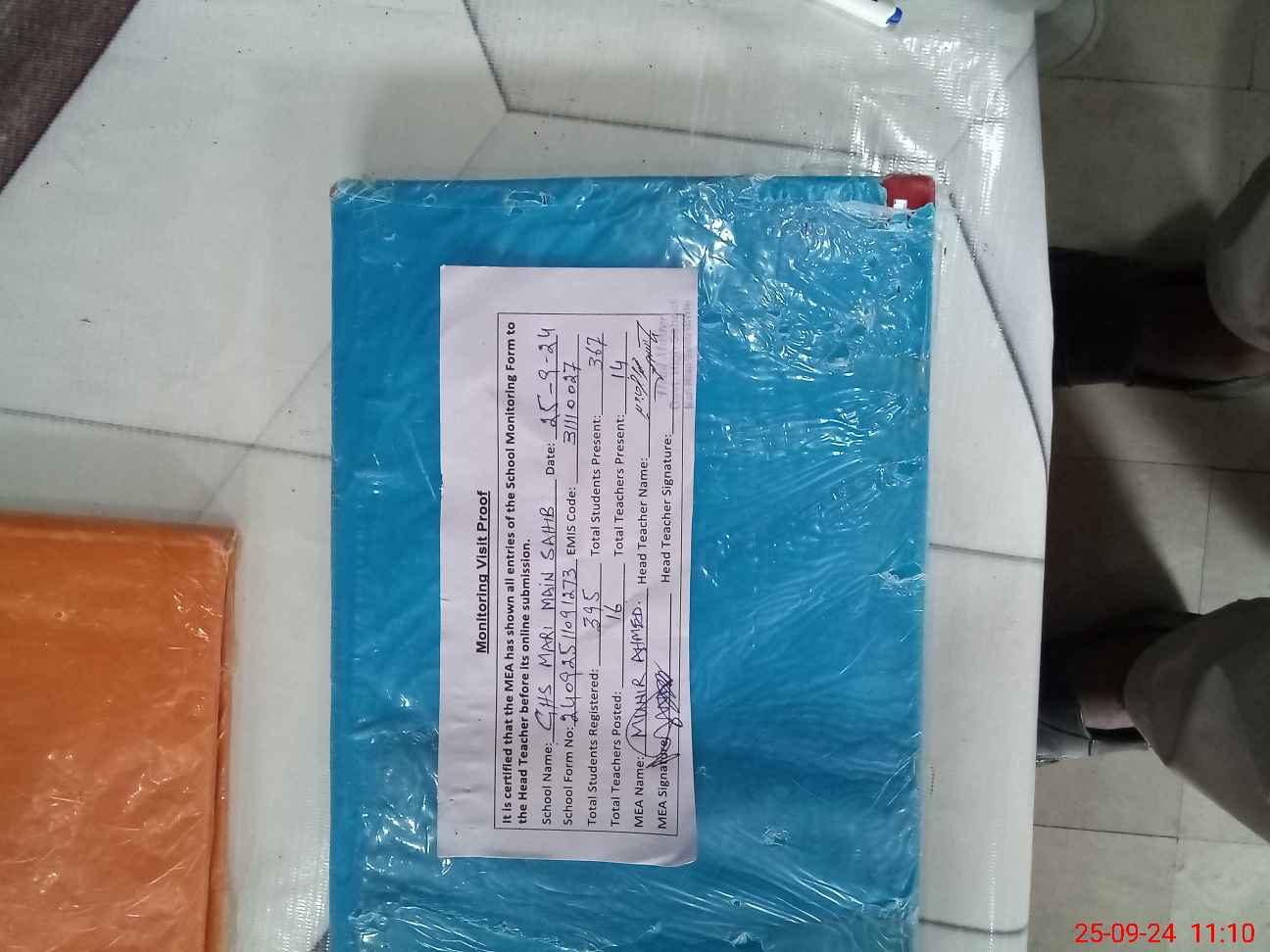 | Attendance Register | Head Teacher | MEA with School | Visit Proof |