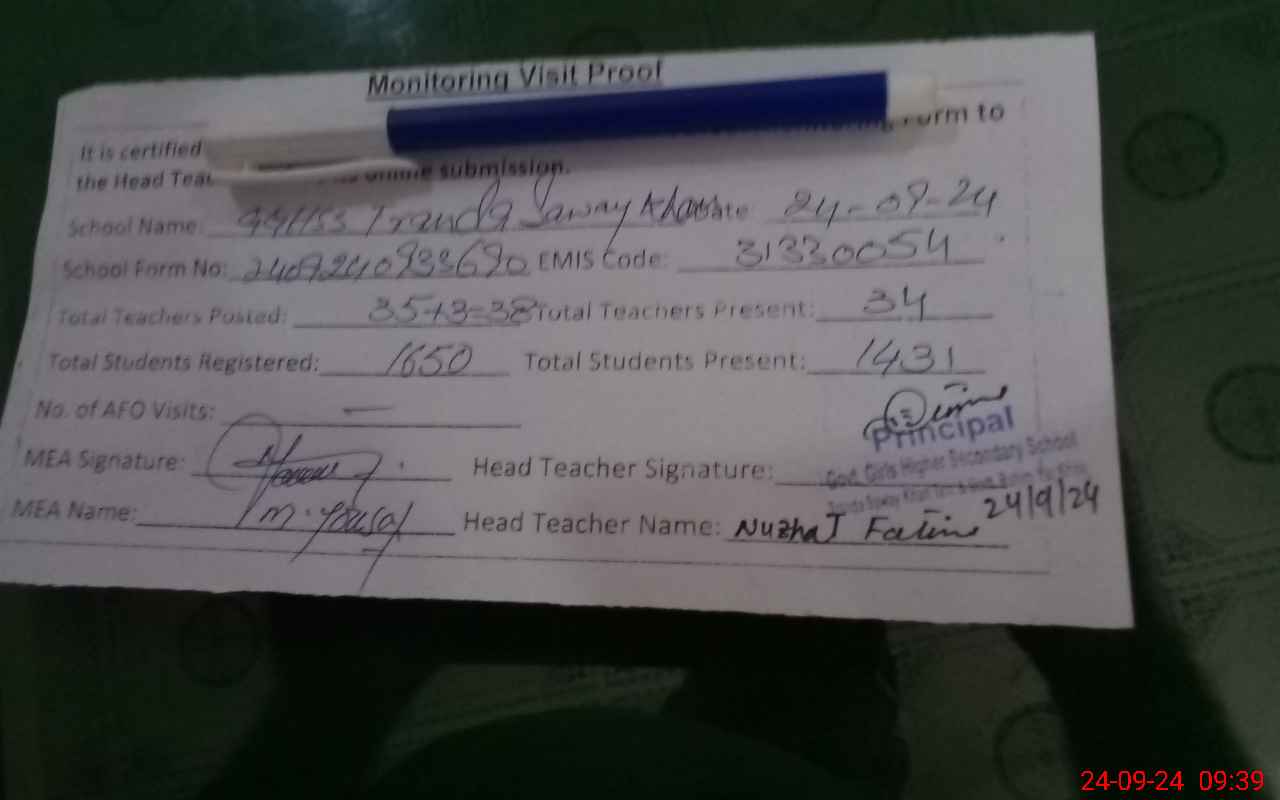 | EMIS Code: 31330054 | Name of School: GGHSS TRANDA SAWAY KHAN | |||