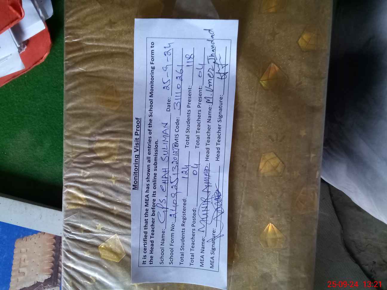 | Attendance Register | Head Teacher | MEA with School | Visit Proof |