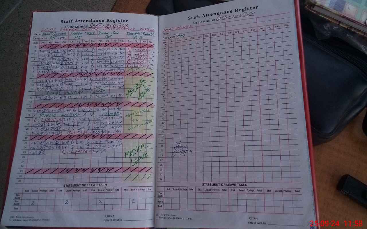 | CNIC | Full Name | Designation | R/C | Absence During Last Calender Month |