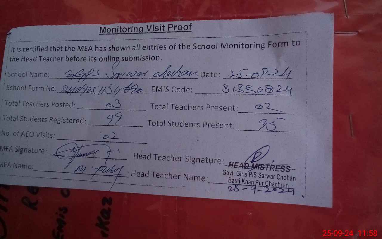 | EMIS Code: 31330824 | Name of School: GGPS SARWAR CHUHAN | |||