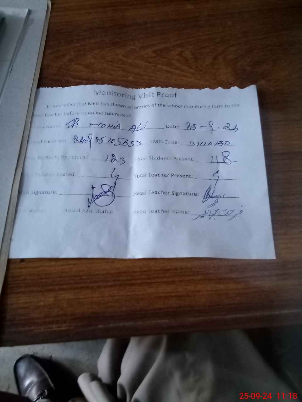 | EMIS Code: 31110130 | Name of School: GPS MOHIB ALI | |||