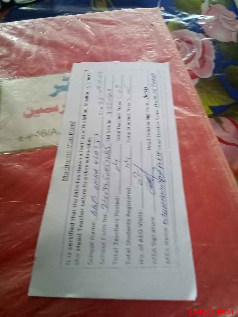 | Name: TA**** AB**** HA**** Designation: (School Headmaster's/Headmistress's) PST/PTC/JV Phone/Cell Number: 03**** |