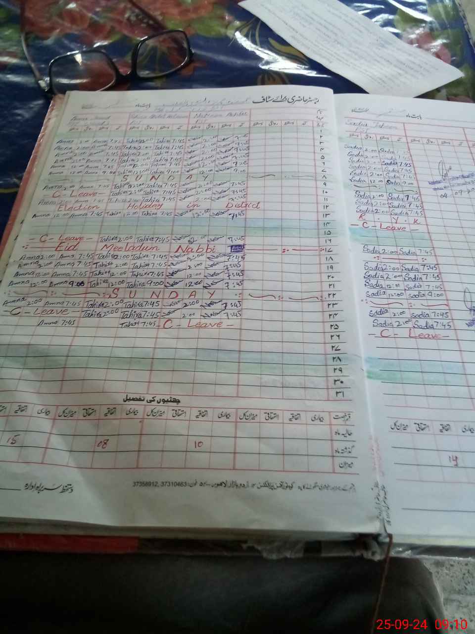 | Leave | Duty | Absent | Maternity | Medical | Ex- Pak |