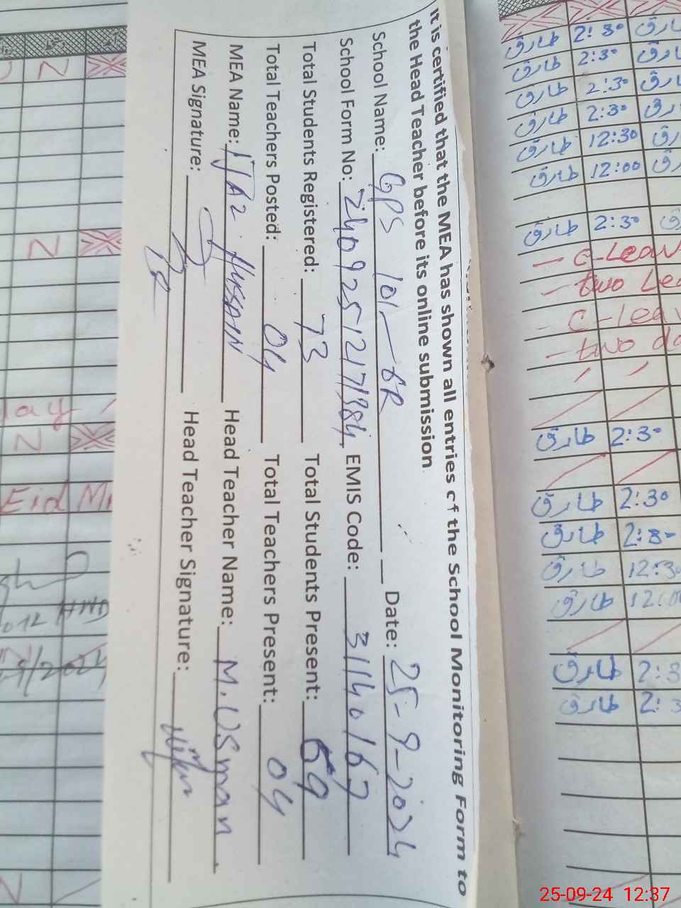 | EMIS Code: 31140167 | Name of School: GPS CHAK NO. 101/6-R | |||