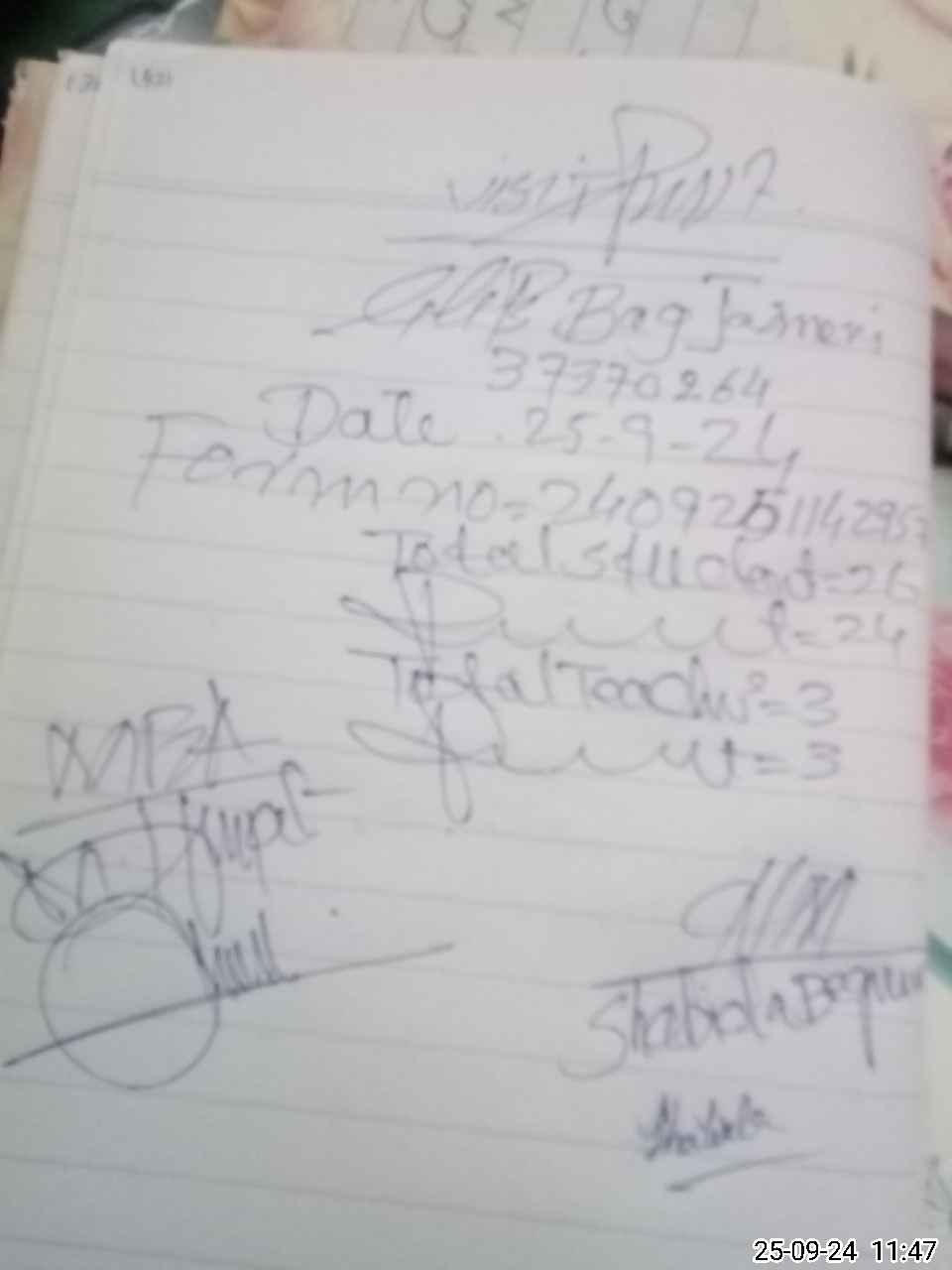 | Monitoring Date: 25-09-2024 | Start Time: 25-09-2024 11:33 AM | End Time: 25-09-2024 11:47 AM | Name of MEA: Rt**** Mu**** Ha**** | |