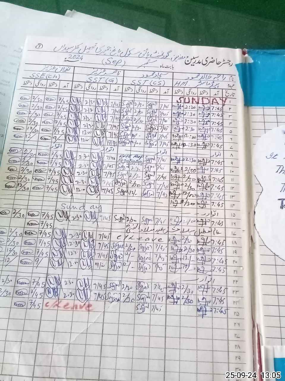 | CNIC | Full Name | Designation | R/C | Absence During Last Calender Month |