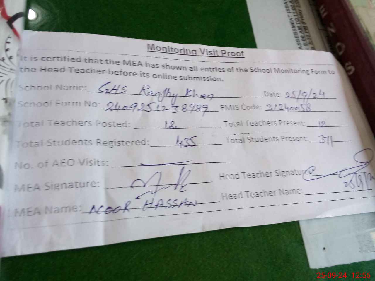 | EMIS Code: 31340058 | Name of School: GHS RANJHAY KHAN | |||