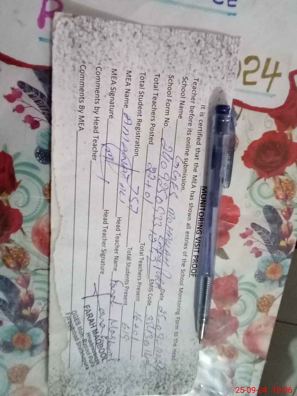 | Certified that this School was Inspected by the Undersigned MEA/DMO Today and the Information Stated Above is as Per Record. | |||||