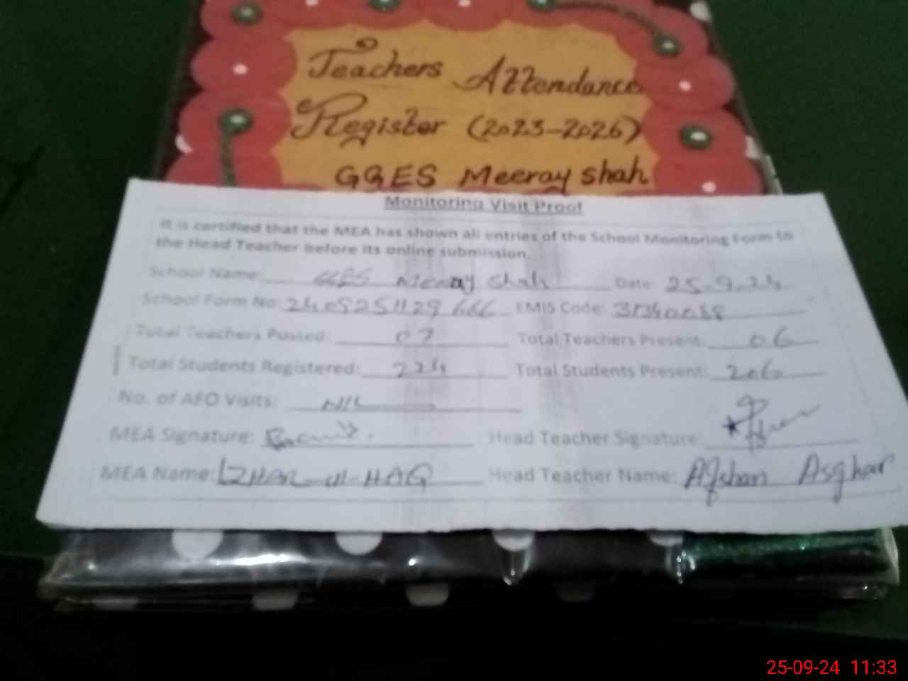 | EMIS Code: 31340088 | Name of School: GGES MERAY SHAH | |||