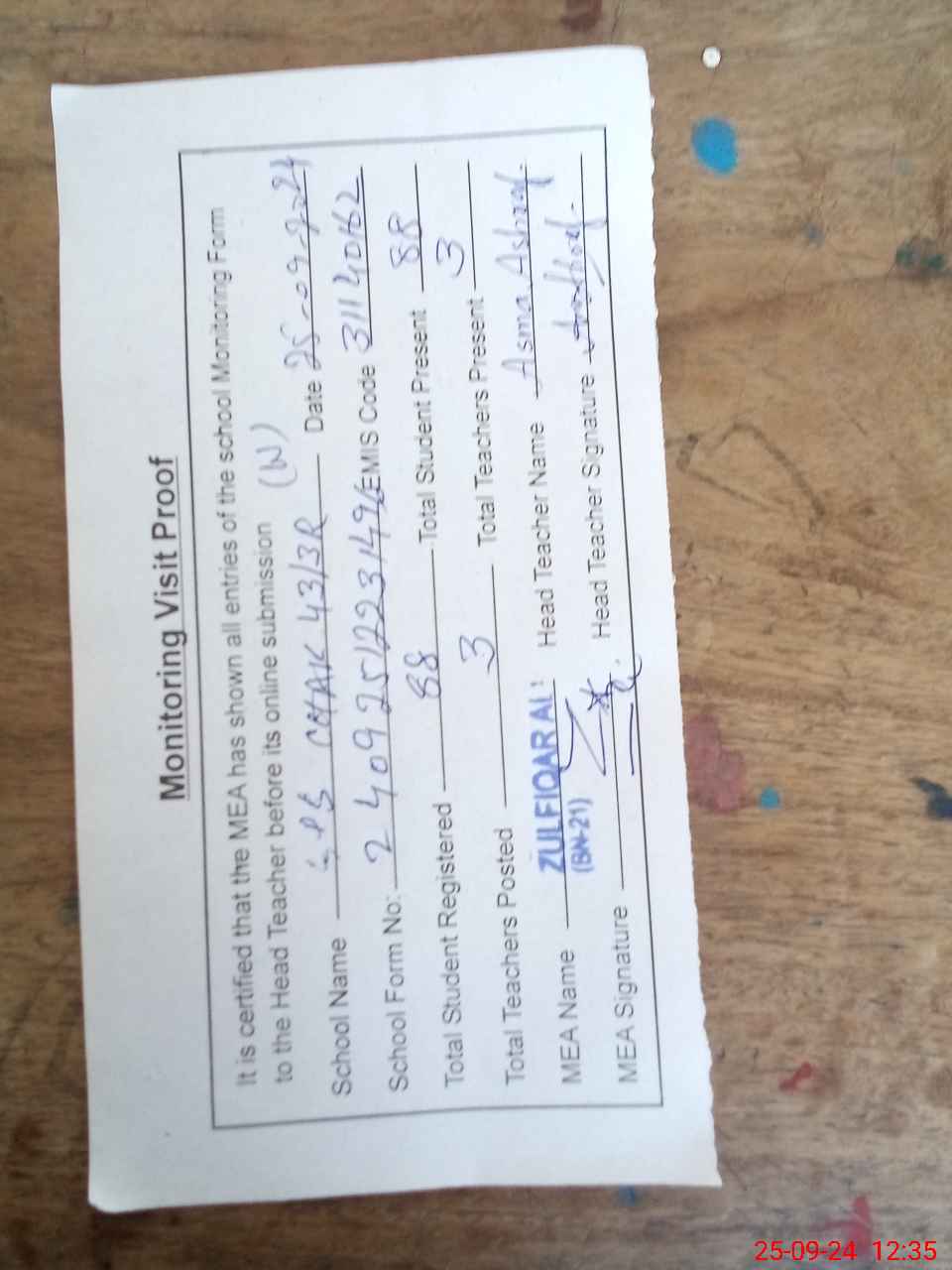 | Name: AS**** AS**** Designation: (School Headmaster's/Headmistress's) PTC/JV Phone/Cell Number: 03**** |