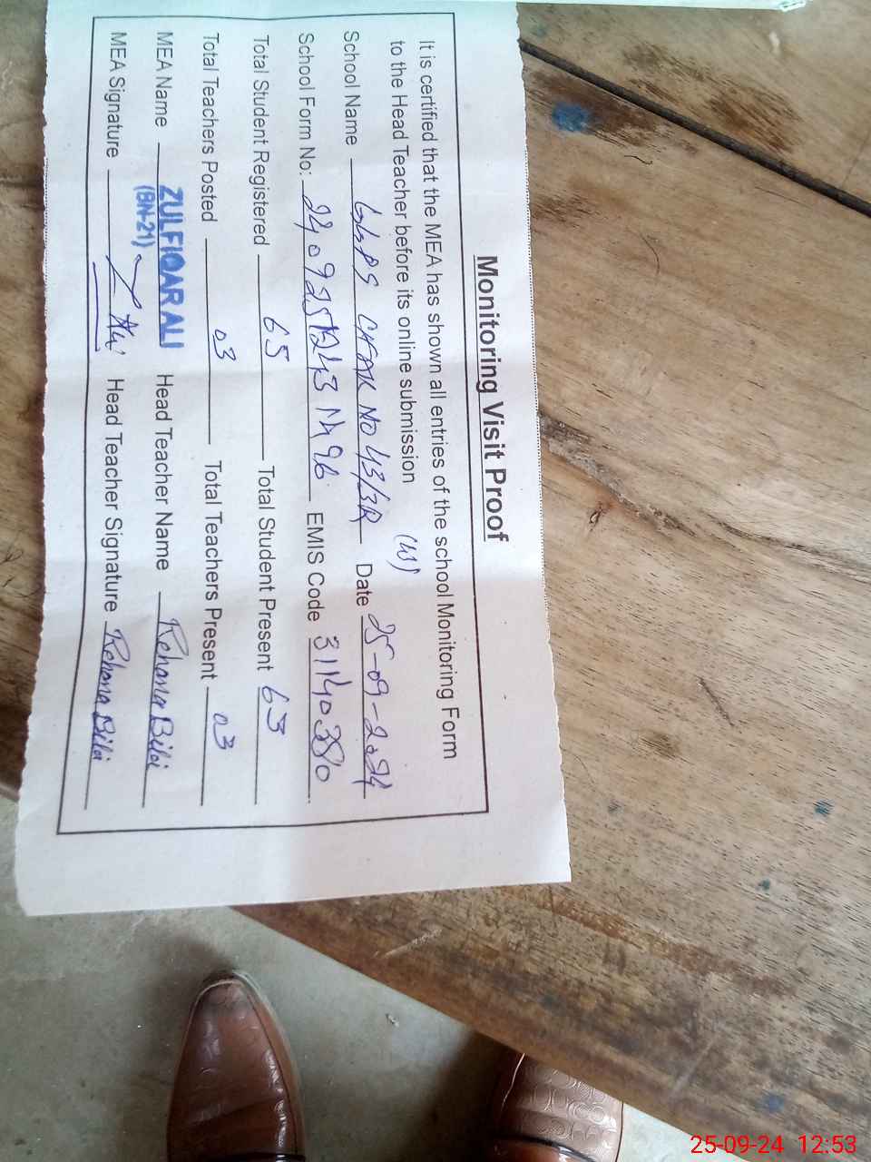 | EMIS Code: 31140380 | Name of School: GGPS CHAK NO 43/3-R W | |||