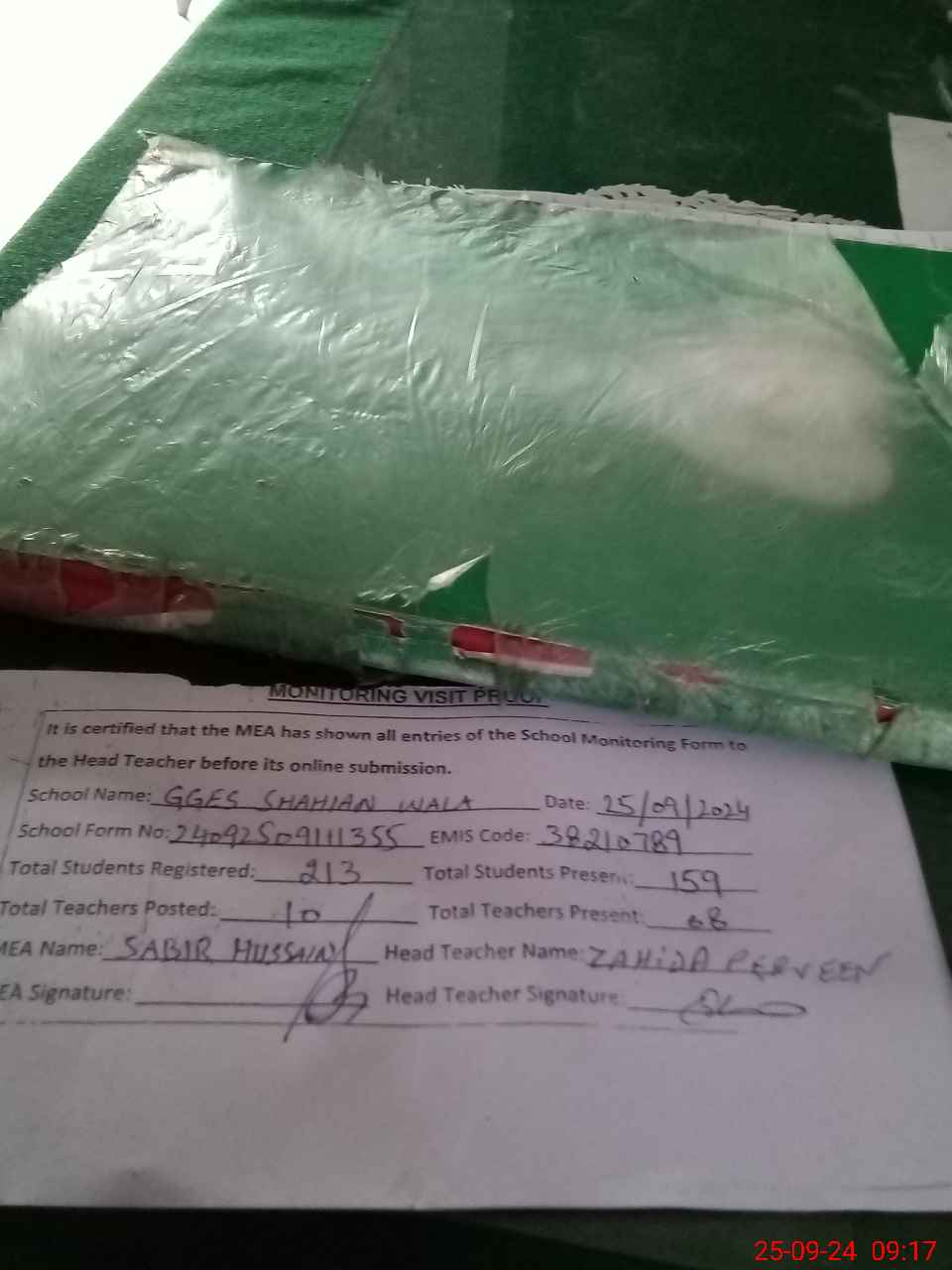 | EMIS Code: 38210789 | Name of School: GGES SHAHIAN WALA | |||