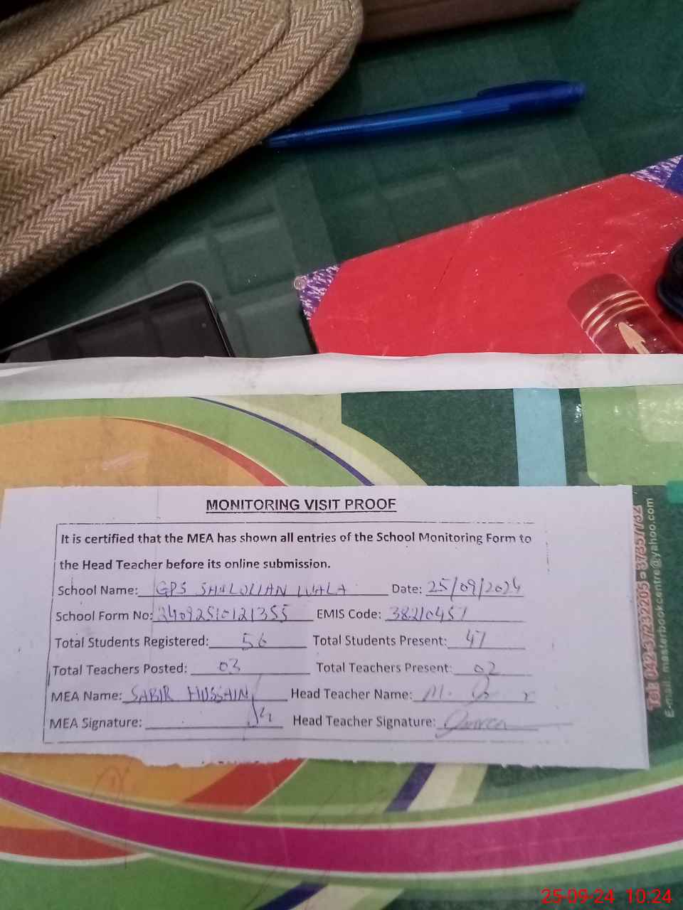 | EMIS Code: 38210457 | Name of School: GPS SHALOLIAN WALA | |||