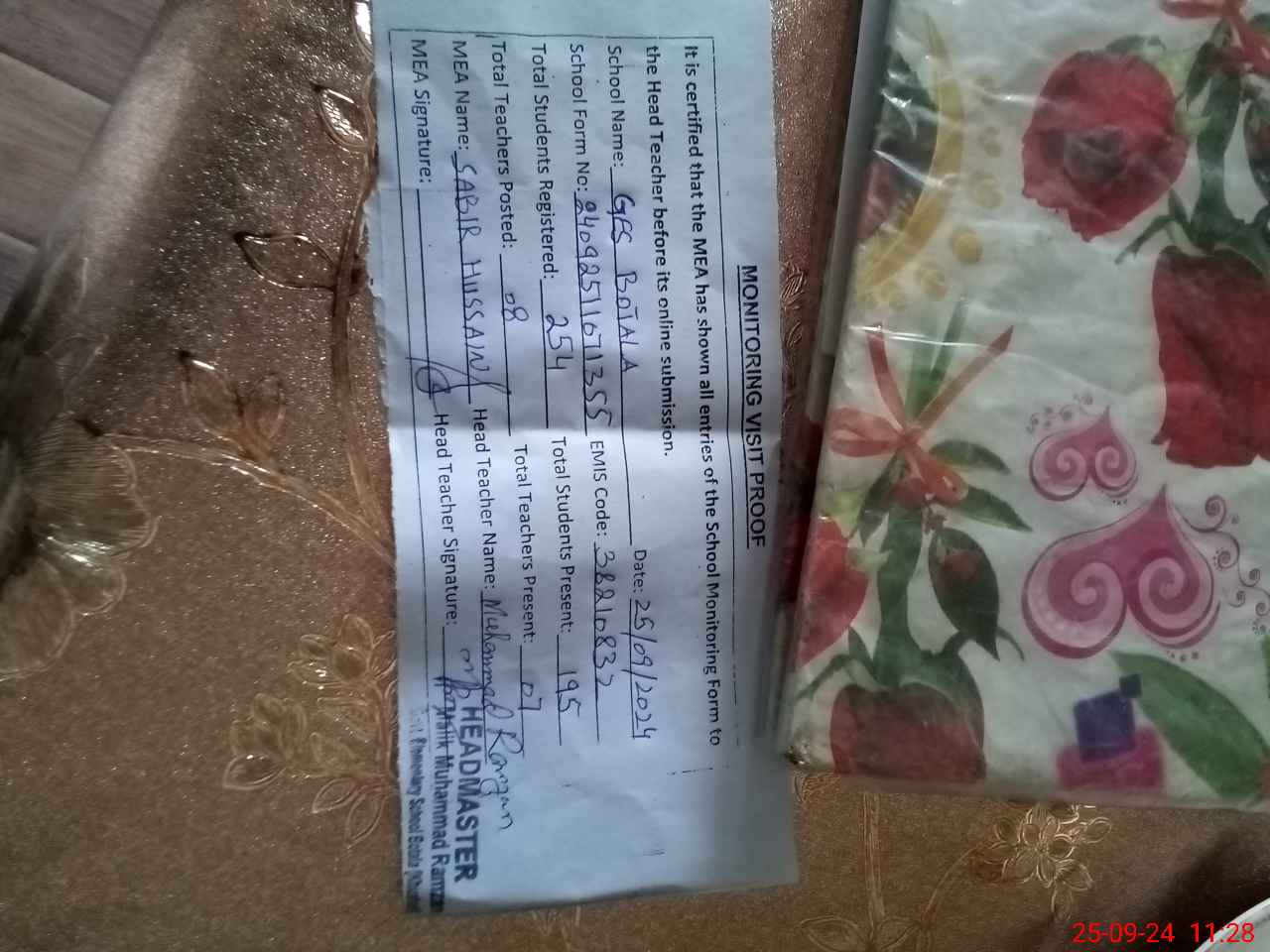 | Certified that this School was Inspected by the Undersigned MEA/DMO Today and the Information Stated Above is as Per Record. | |||||