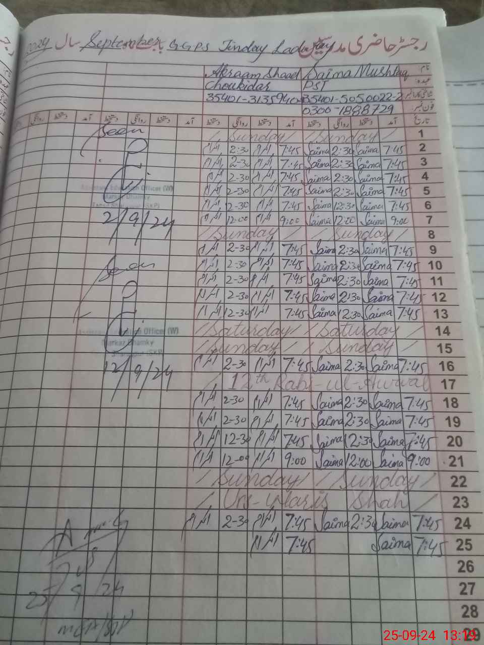 | Name: Sa**** Mu**** Designation: (School Headmaster's/Headmistress's) ESE Sco Math Phone/Cell Number: 03**** |