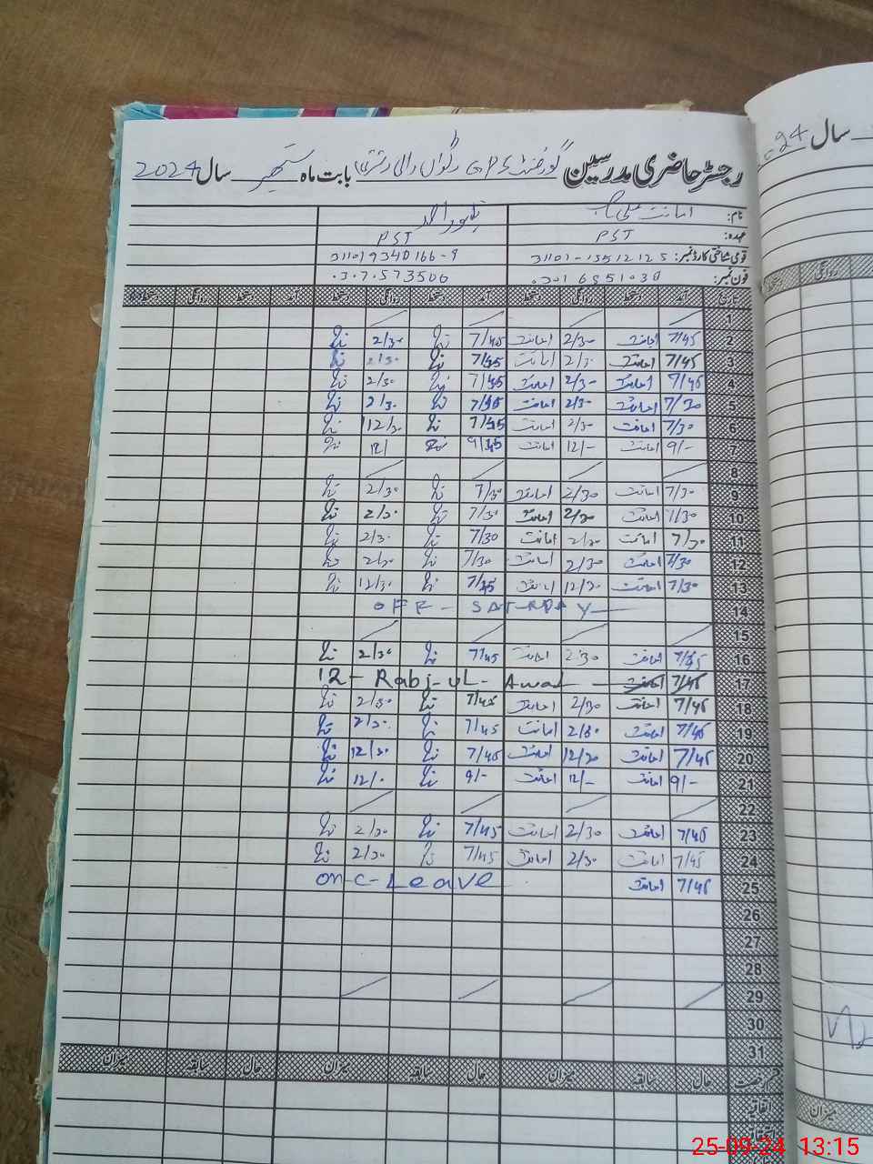 | CNIC | Full Name | Designation | R/C | Absence During Last Calender Month |