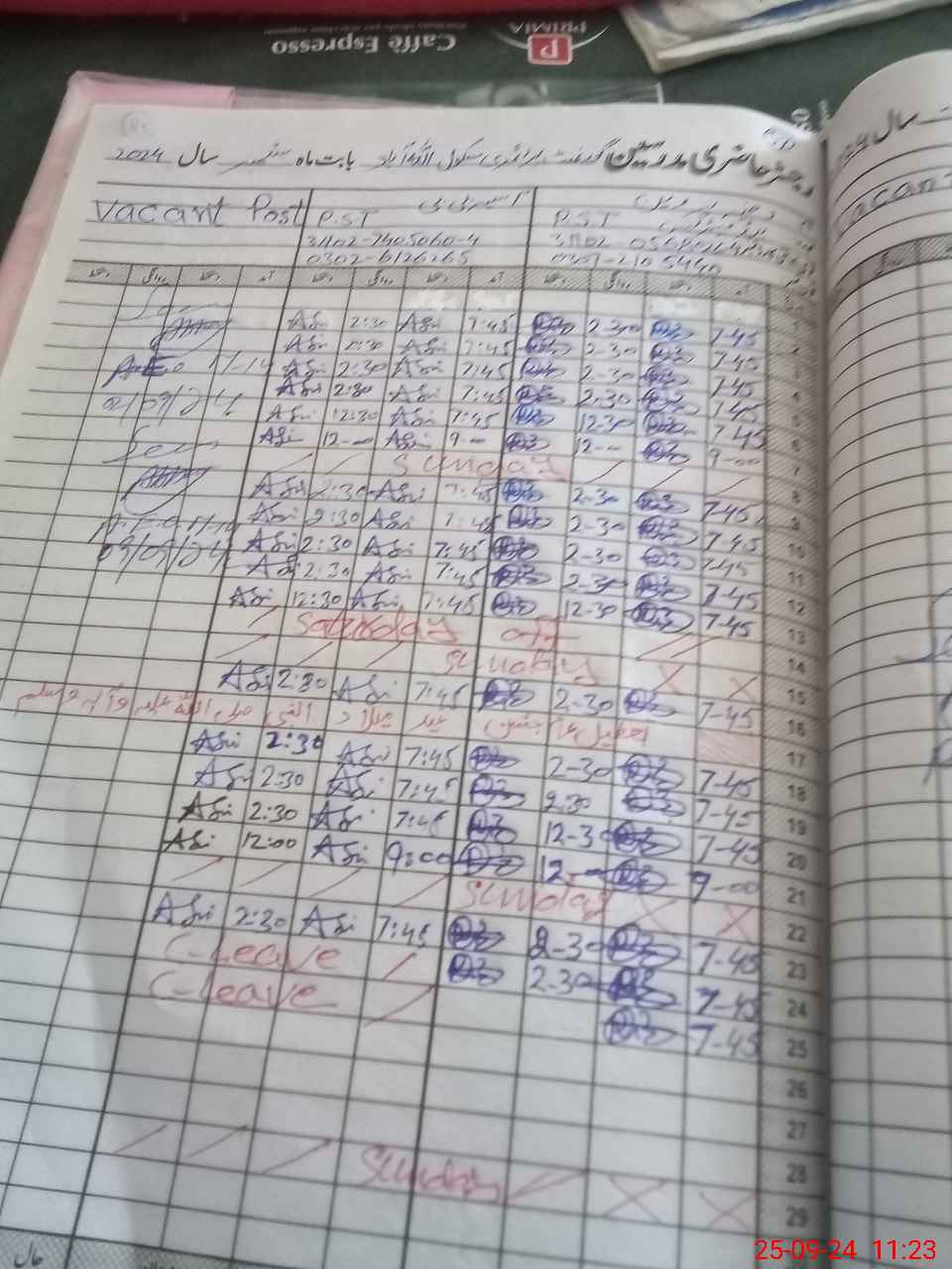 | Leave | Duty | Absent | Maternity | Medical | Ex- Pak |