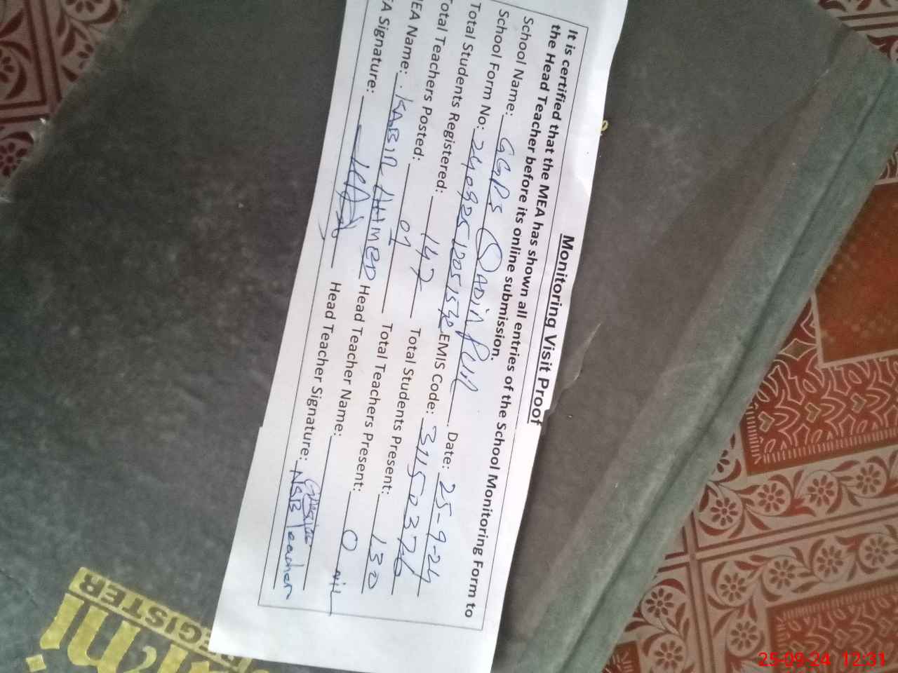 | EMIS Code: 31150376 | Name of School: GGPS QADIR PUR | |||