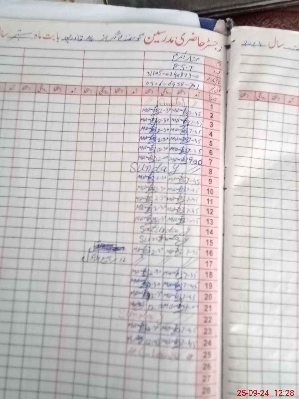 | Name: Mu**** Ak**** Designation: (School Headmaster's/Headmistress's) PST Phone/Cell Number: 03**** |