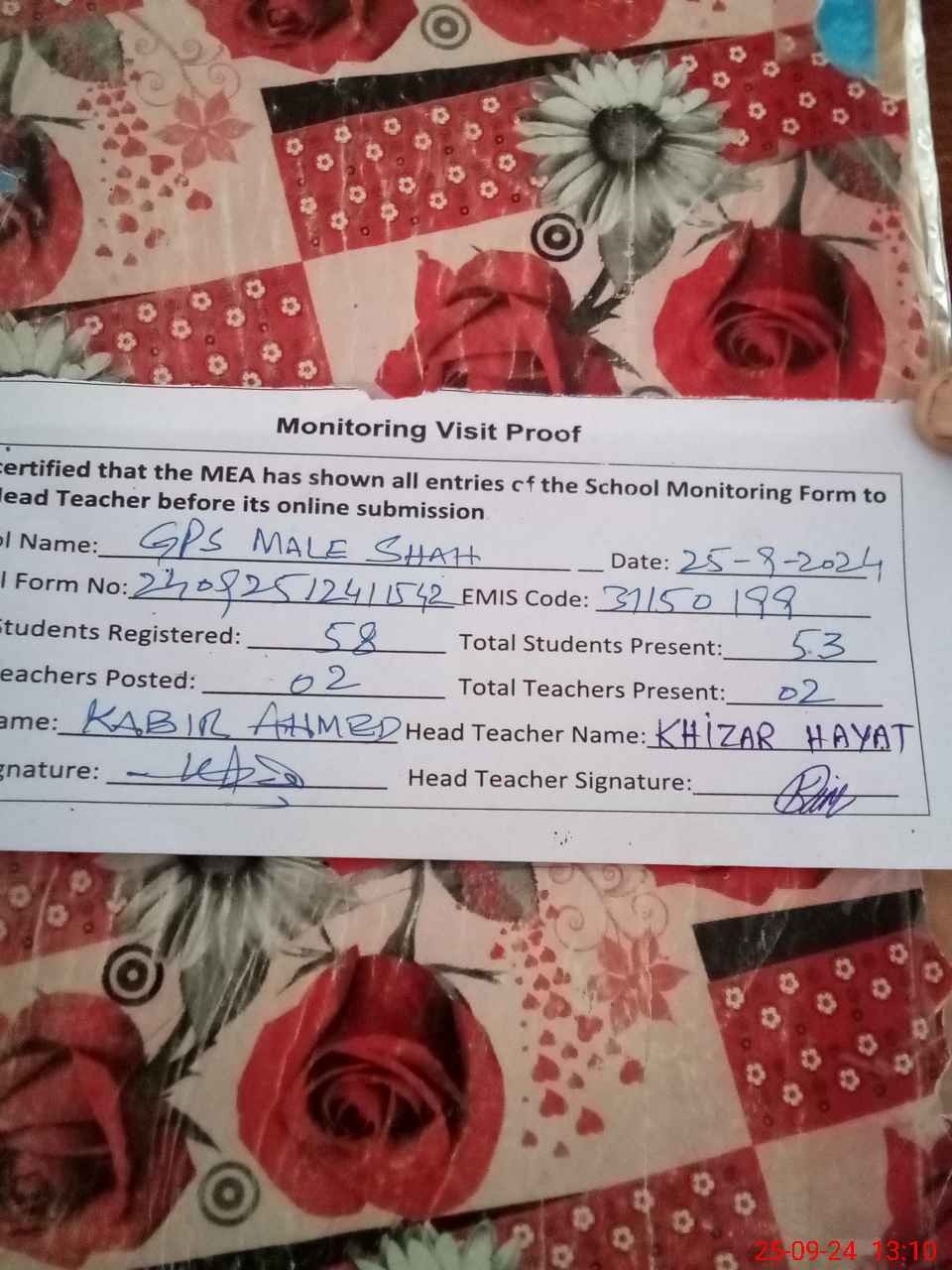 | EMIS Code: 31150199 | Name of School: GPS MALE SHAH | |||