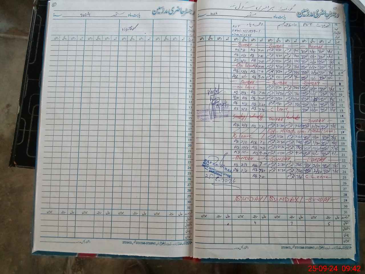 | CNIC | Full Name | Designation | R/C | Absence During Last Calender Month |