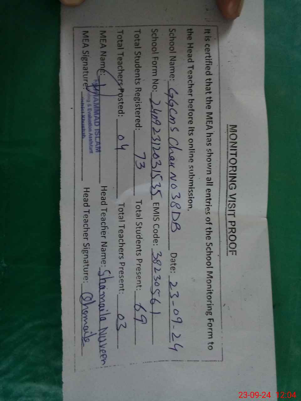 | EMIS Code: 38230561 | Name of School: GGCMS CHAK NO.38 DB | |||