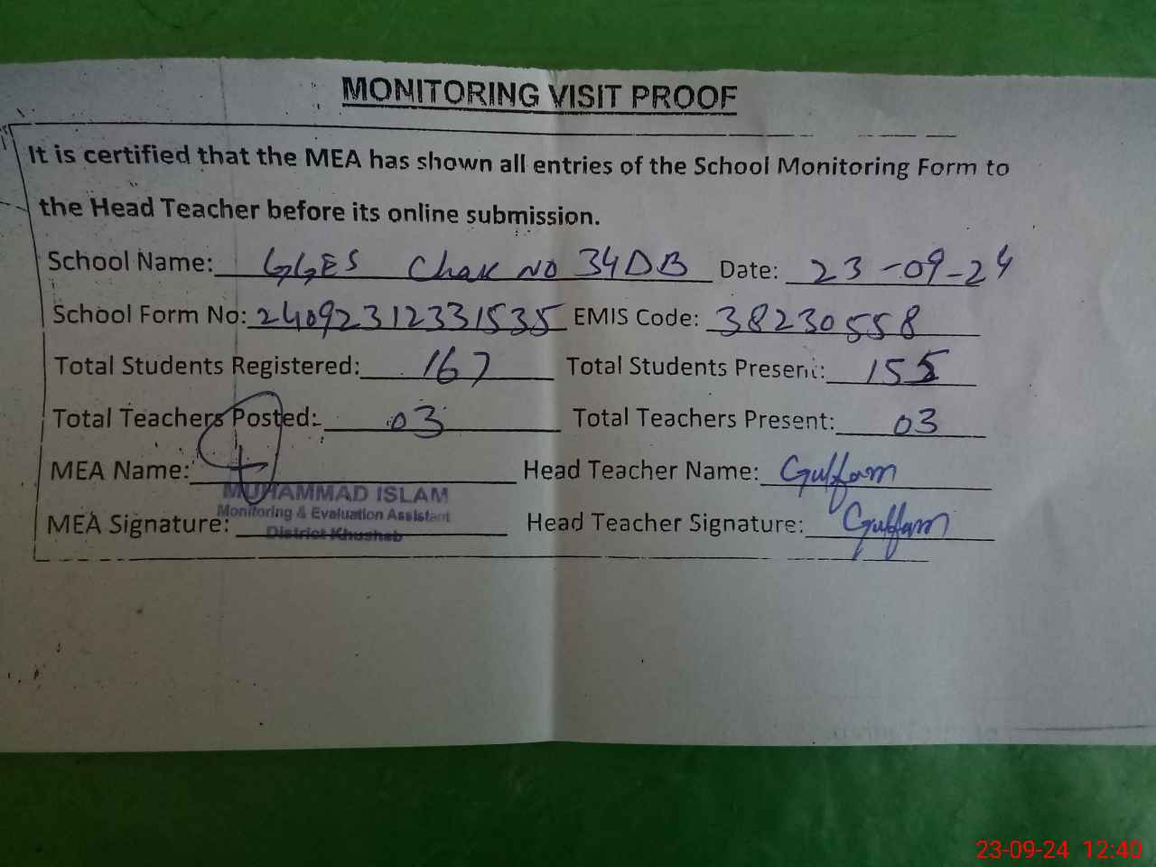 | EMIS Code: 38230558 | Name of School: GGES CHAK NO.34 DB | |||