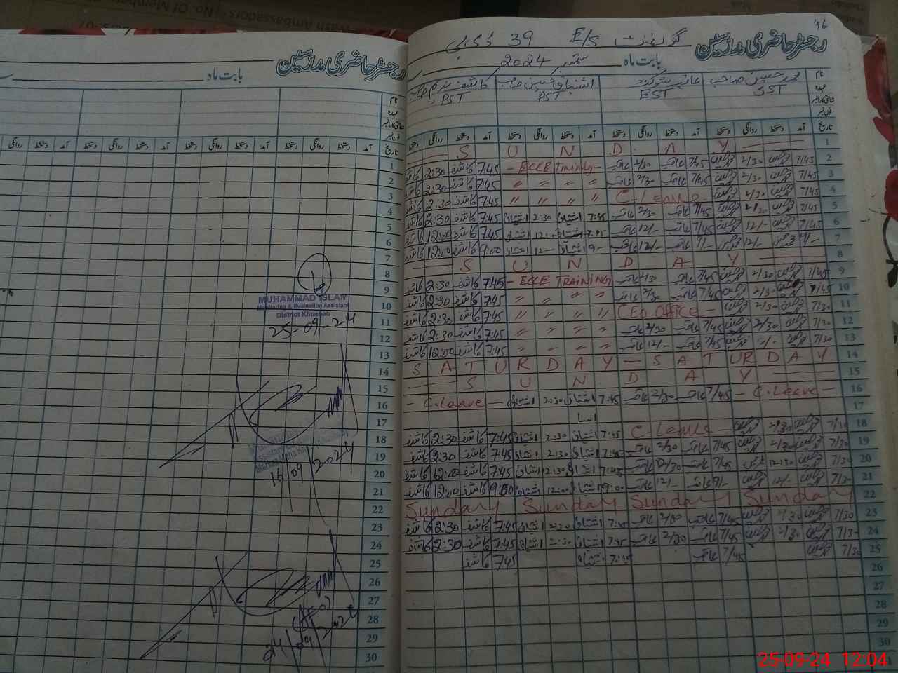 | CNIC | Full Name | Designation | R/C | Absence During Last Calender Month |