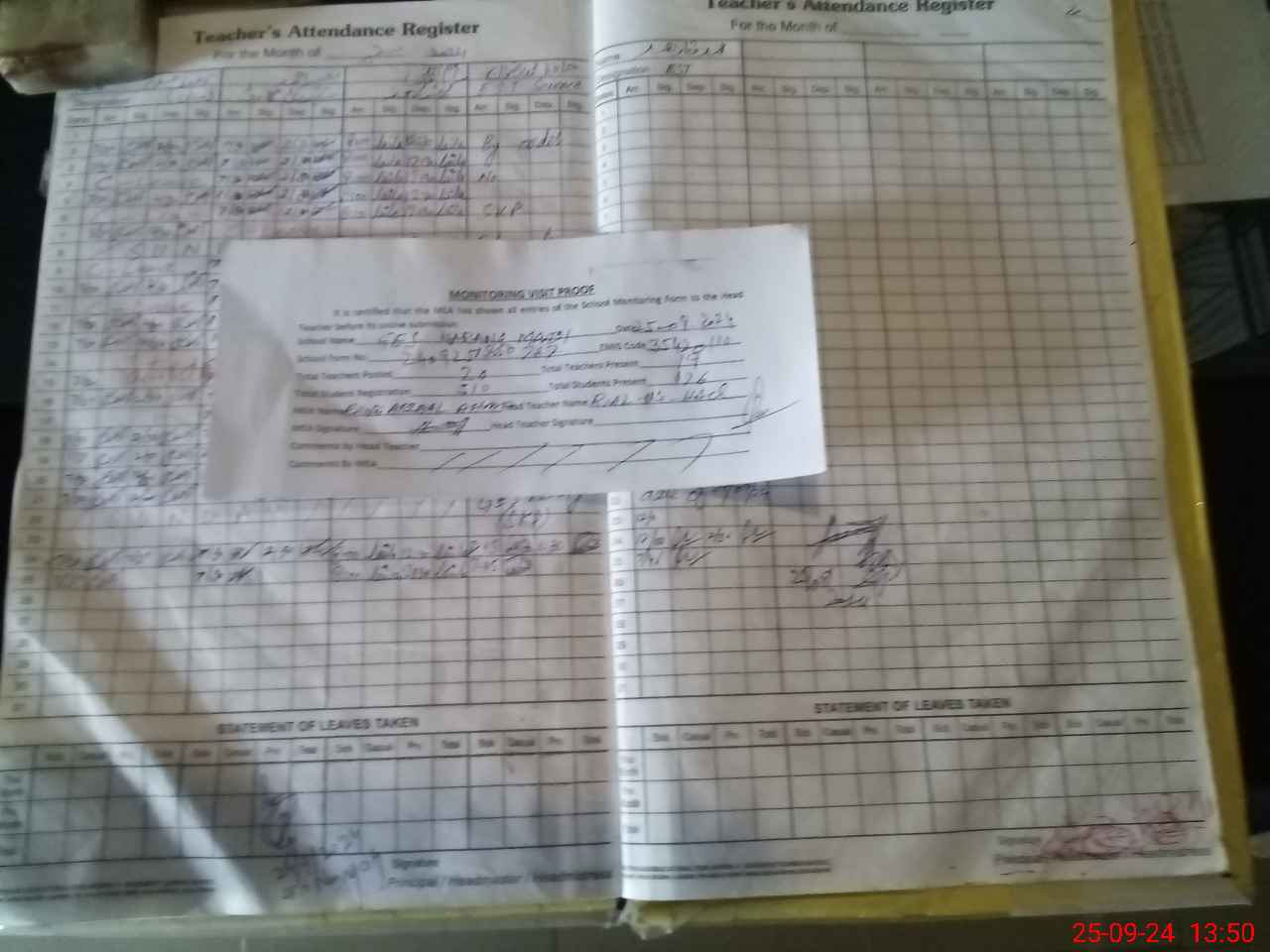 | Attendance Register | Head Teacher | MEA with School | Visit Proof |