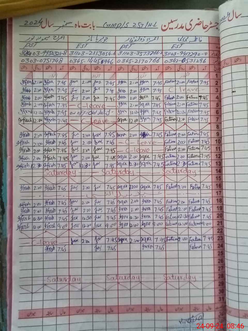 | 31**** | Sa**** Ko**** | Contract | 0 | 0 | 0 | 0 | 0 | 0 | 0 | 0 | 0 | Absent (Un-Authorized) | |