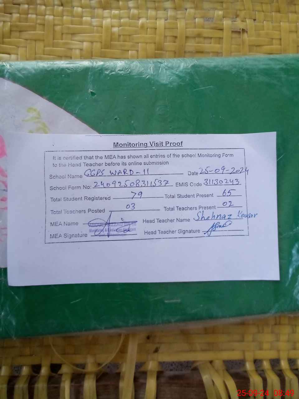 | EMIS Code: 31130243 | Name of School: GGPS WARD NO. 11 | |||