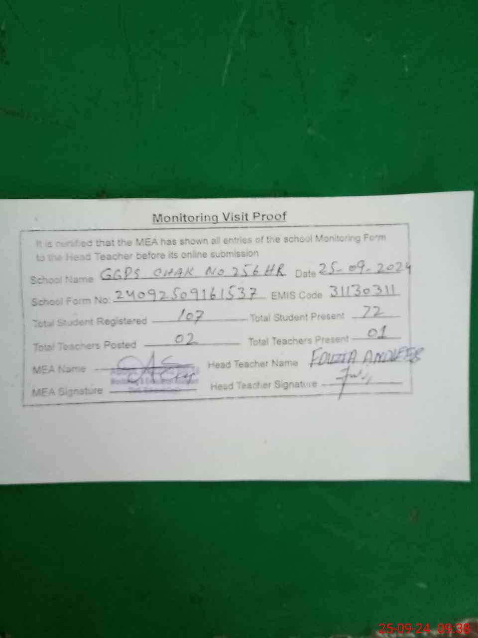 | EMIS Code: 31130311 | Name of School: GGPS CHAK NO 256/HR | |||