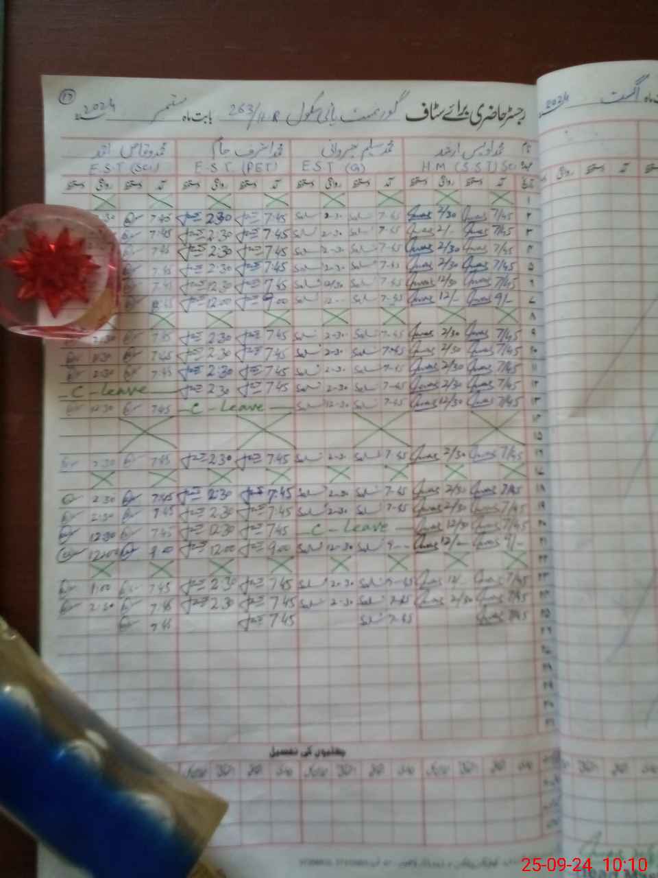 | Leave | Duty | Absent | Maternity | Medical | Ex- Pak |