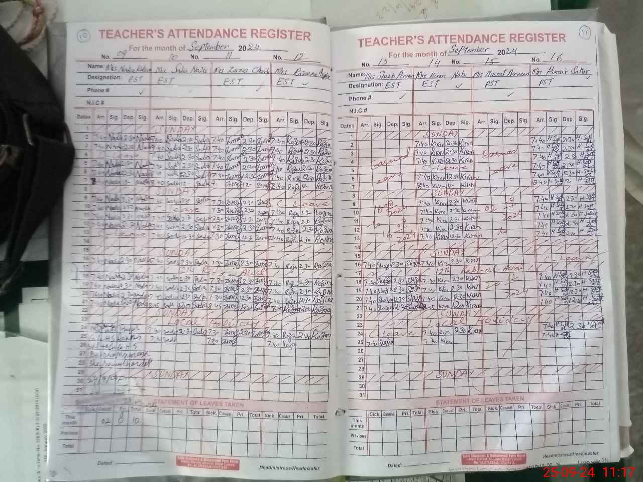 | Remarks (Use Separate Page if Required): Teachress Nusrat perveen EST approved leave not available at school nor on sis So marked as absent | |||||