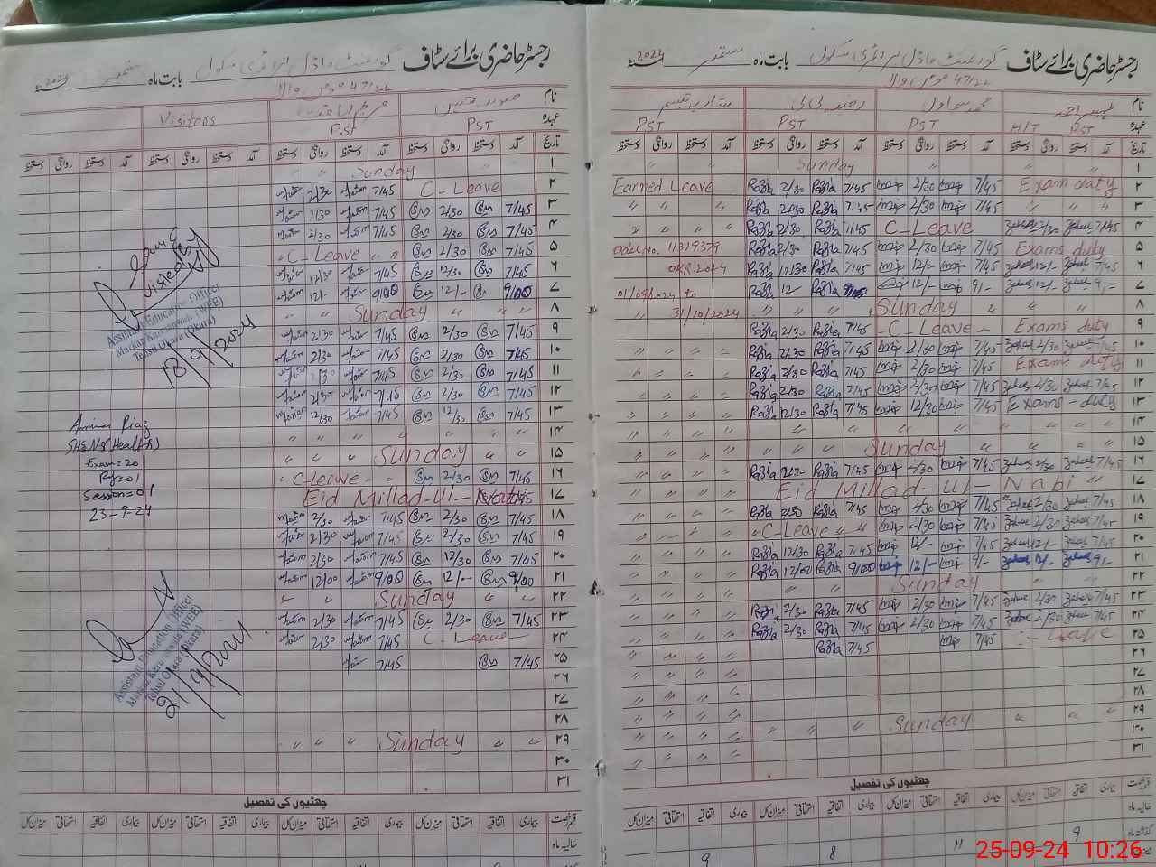 | CNIC | Full Name | Designation | R/C | Absence During Last Calender Month |