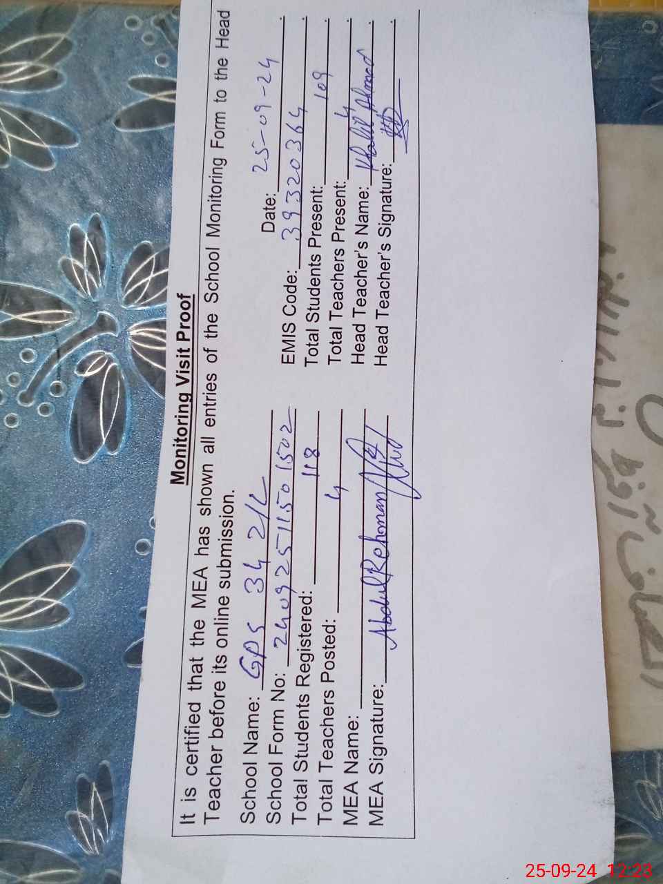 | EMIS Code: 39320364 | Name of School: GPS CHAK 34/2-L | |||