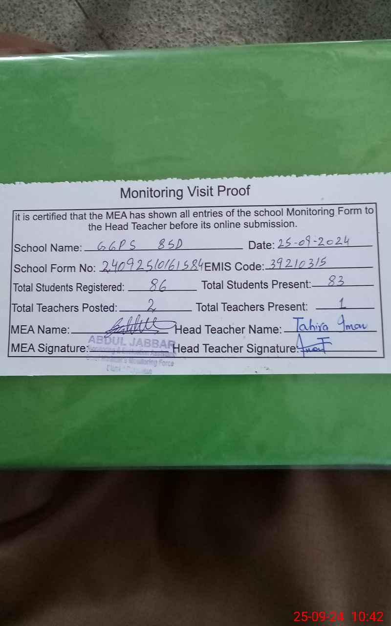 | EMIS Code: 39210315 | Name of School: GGPS 85 D | |||