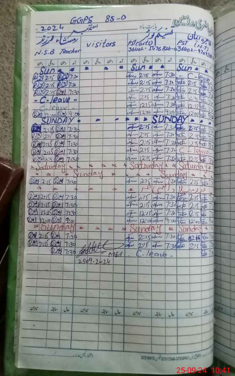 | CNIC | Full Name | Designation | R/C | Absence During Last Calender Month |