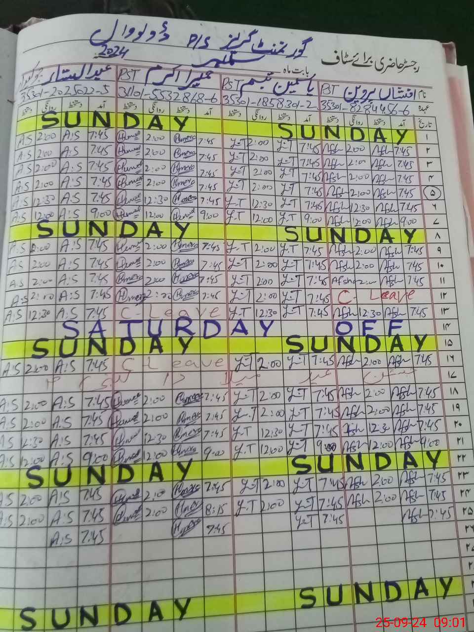 | CNIC | Full Name | Designation | R/C | Absence During Last Calender Month |