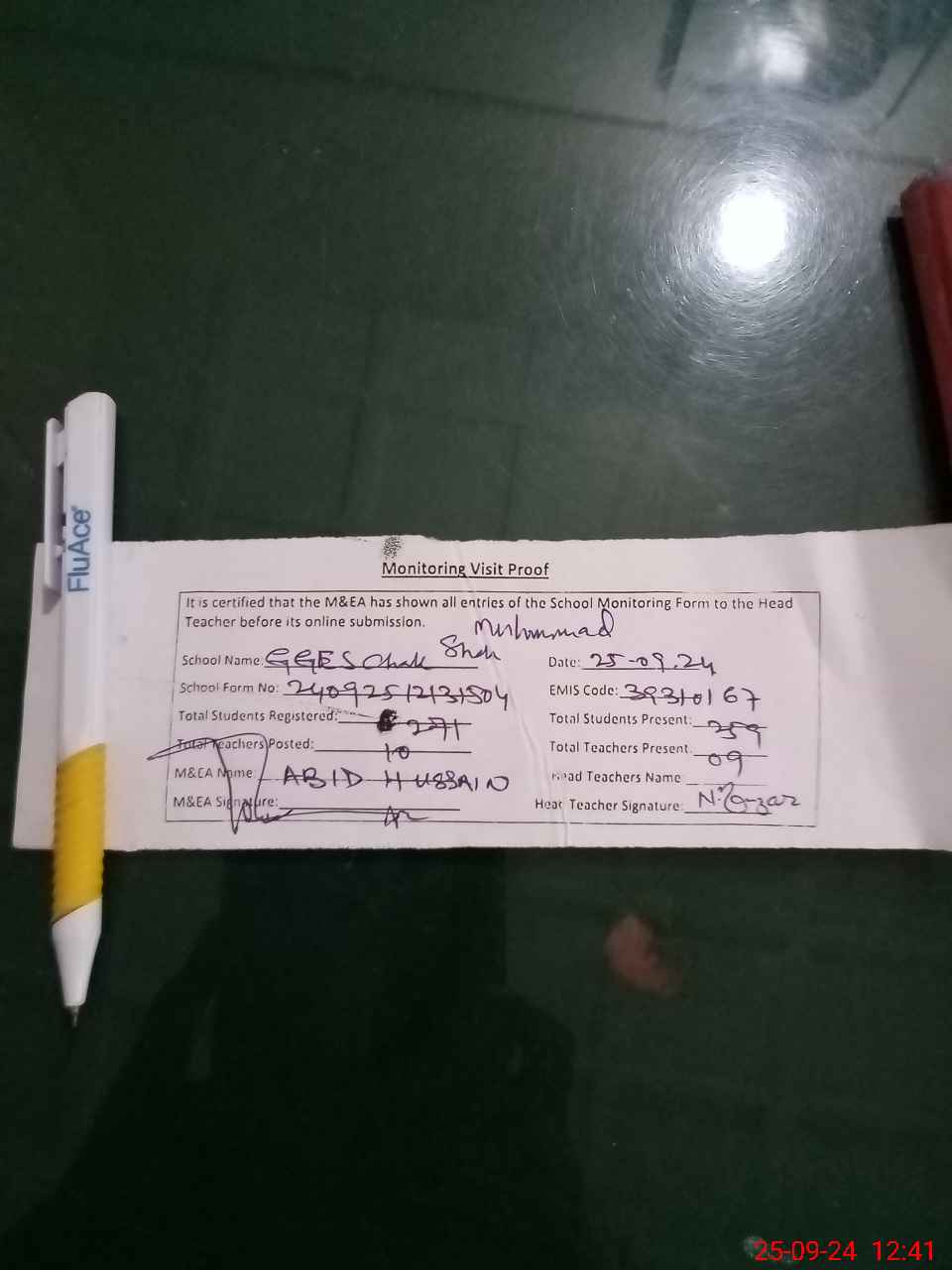 | Attendance Register | Head Teacher | MEA with School | Visit Proof |