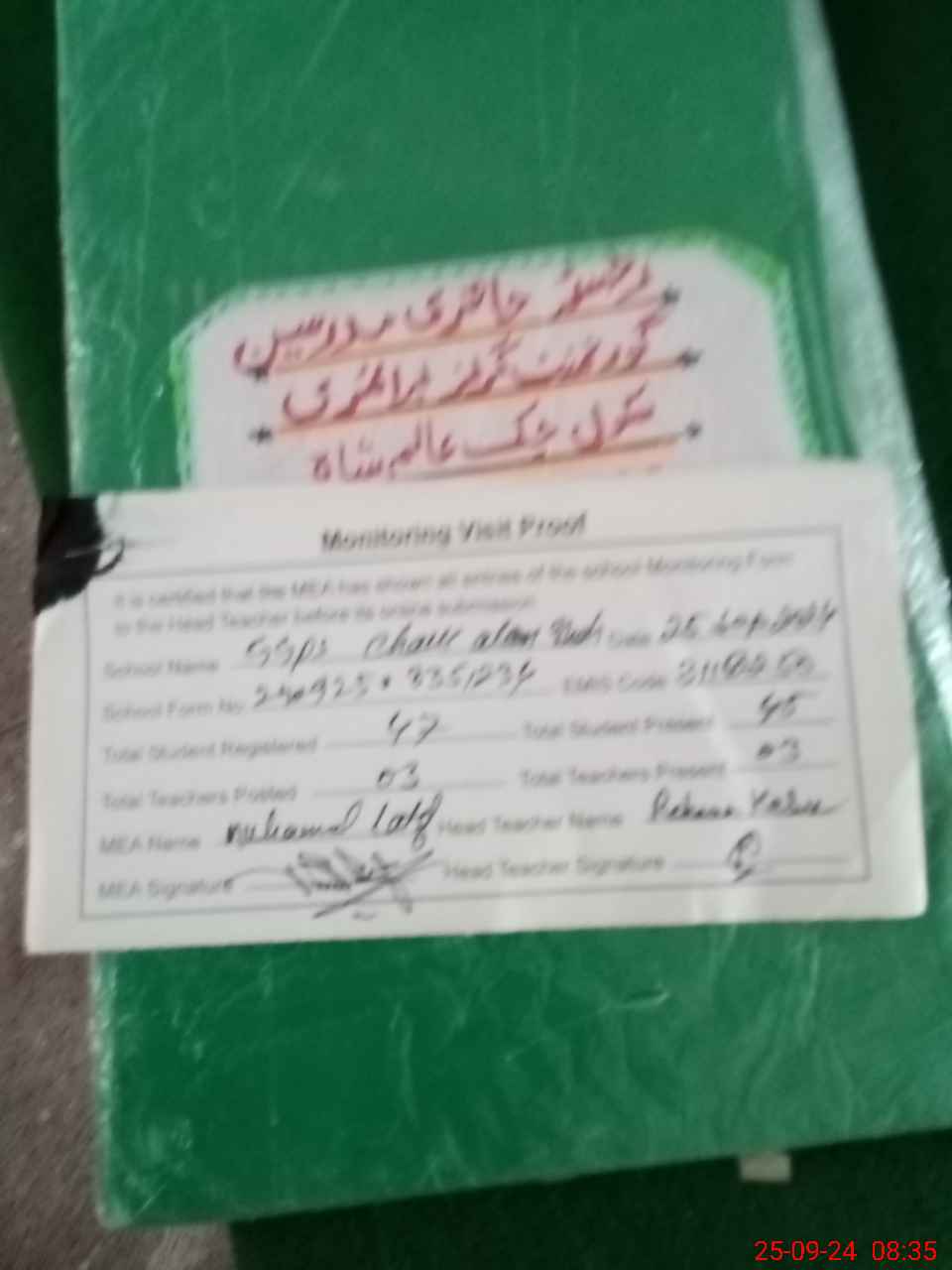 | EMIS Code: 31150250 | Name of School: GGPS CHAK ALAM SHAH | |||