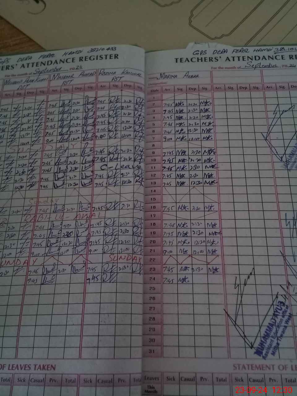| CNIC | Full Name | Designation | R/C | Absence During Last Calender Month |