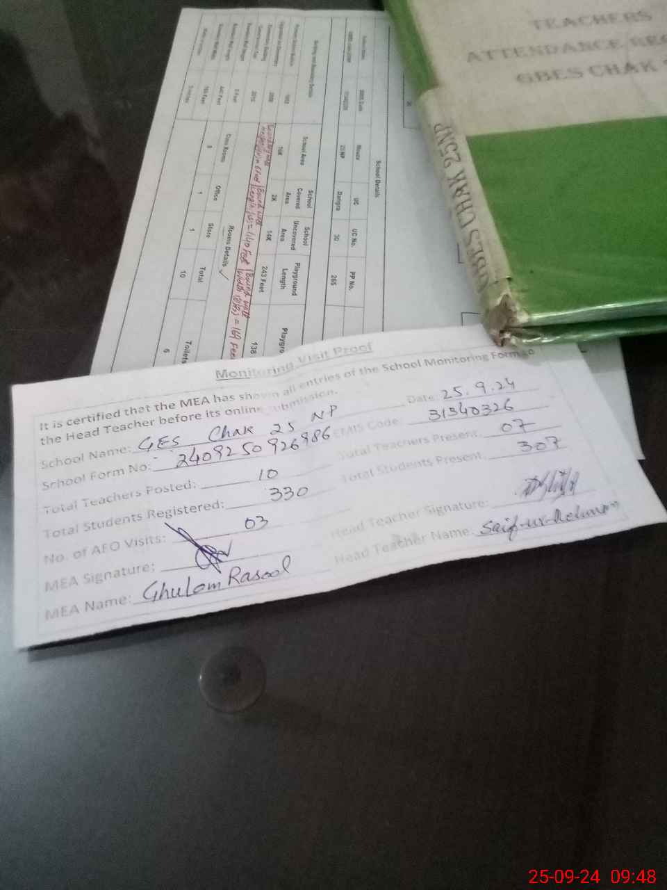 | Attendance Register | Head Teacher | MEA with School | Visit Proof |