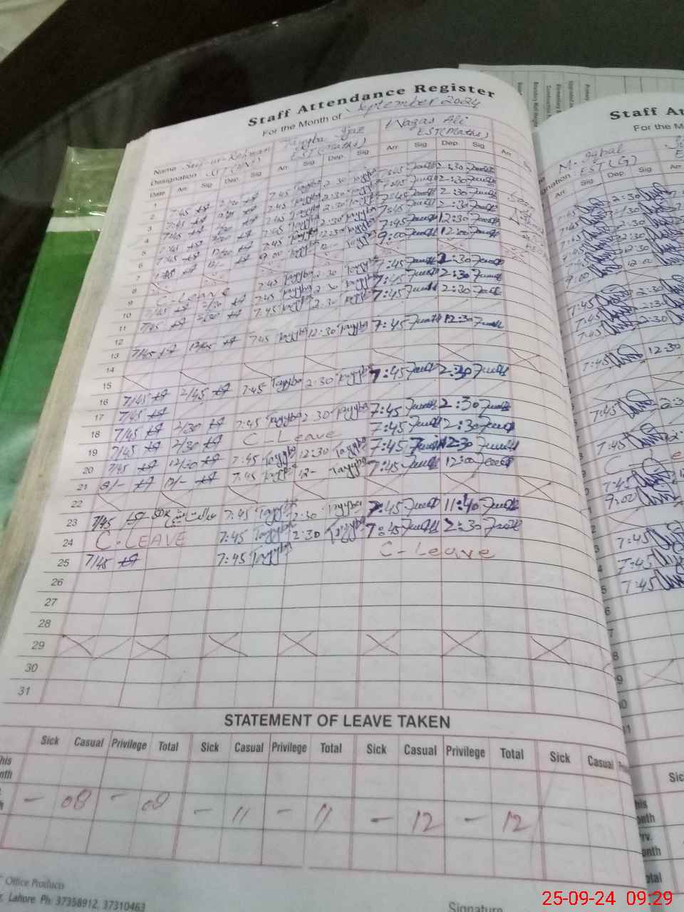 | CNIC | Full Name | Designation | R/C | Absence During Last Calender Month |