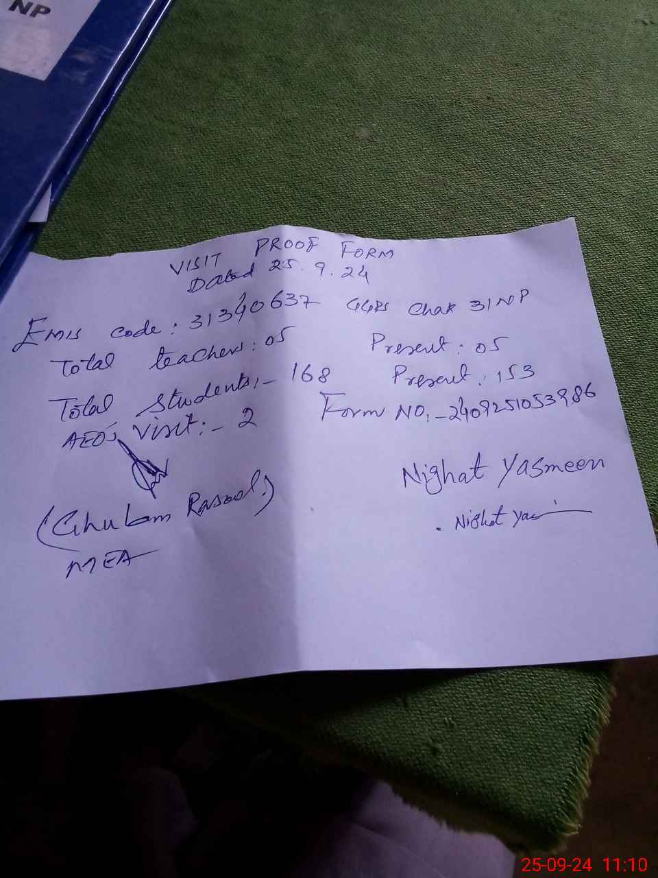 | EMIS Code: 31340637 | Name of School: GGPS CHAK NO.31/NP | |||