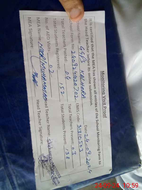 | EMIS Code: 31310503 | Name of School: GGPS KALHOORA | |||